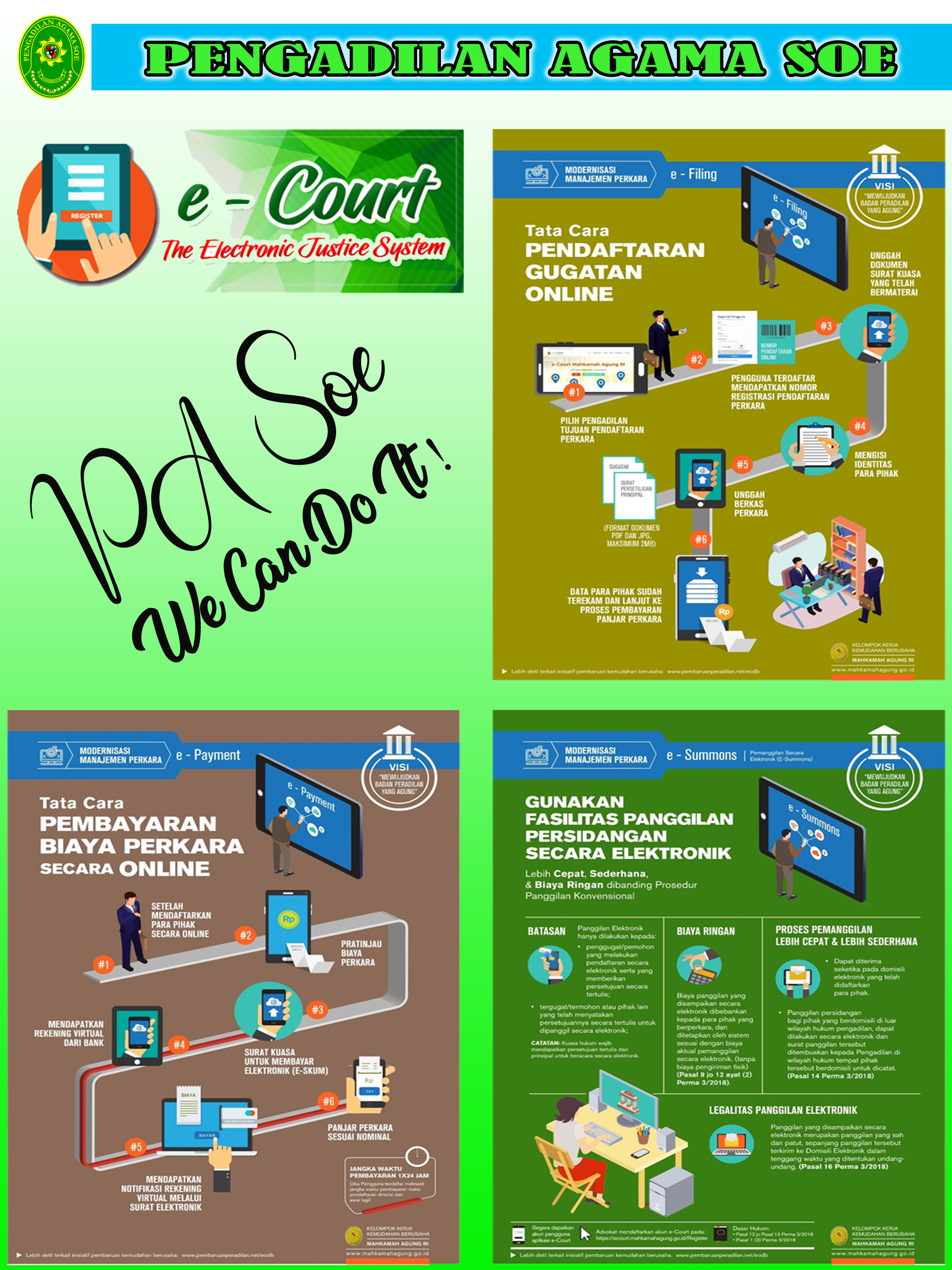 - Keputusan Direktur Jenderal Badan Peradilan Agama MARI Nomor 1294/DjA/HK.00.6/SK/05/2018 Tentang Petunjuk Pelaksanaan Peraturan Mahkamah Agung Nomor 3 Tahun 2018 Tentang Administrasi Perkara di Pengadilan Secara Elekktronik,